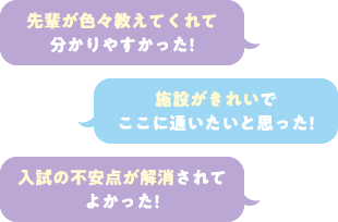 先輩方のお陰で、大学のイメージが湧きやすかったので、漠然としていた東京未来大学でのキャンパスライフが明確にイメージできました!